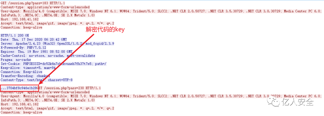 流量特征共分为两次 get 请求,第一次请求服务端产生密钥写入 session,第二次请求用于获取 key