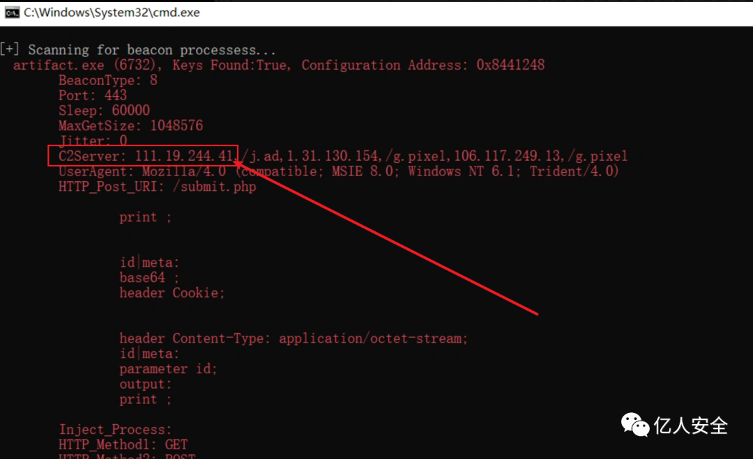 BeaconEye 的核心原理是通过扫描 CobaltStrike 中的内存特征,并进行 BeaconConfig 扫描解析出对应的 Beacon 信息,项目地址是