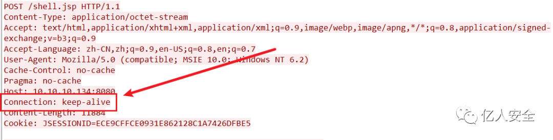 冰蝎通讯默认使用长连接,避免了频繁的握手造成的资源开销。默认情况下,请求头和响应头里会带有 Connection: Keep-Alive