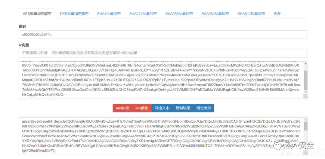 到该网站使用上面的 key 进行 AES 解密,解密后的内容为 base64 编码后的结果