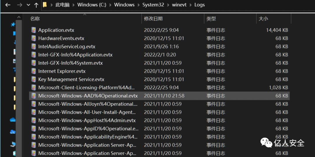 在 % SystemRoot%\System32\Winevt\Logs\ 位置存放着日志文件