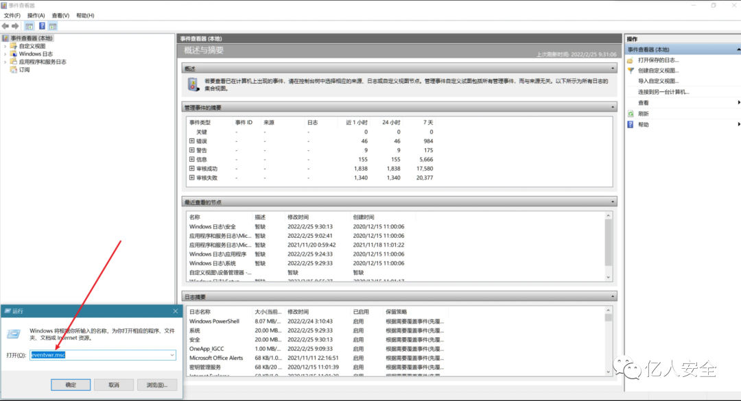 通过 cmd 输入 eventvwr.msc 打开事件查看器