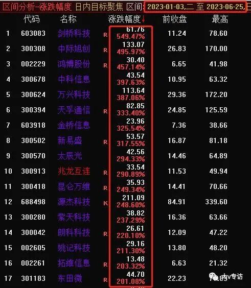 比如从1月1号到今天,两市涨幅超过200%的股票有17只;