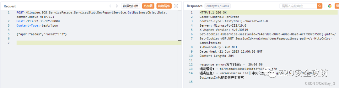 可以发现请求体ap0参数构造任意字符串发起请求时会出现序列化异常,这种情况则存在漏洞