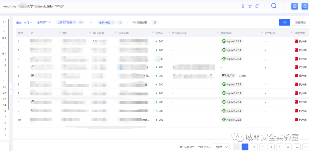比如icp.name="xx大学"&&web.title="xx系统",然后大学有很多有一些某某研究院,某某研究中心等等,稍微把语法换一换即可。