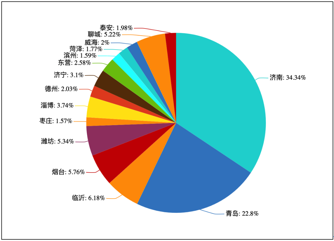 截止2023年06月底,通过潮启移动端安全管控平台共监测到山东省移动应用数量为11191款(不含历史版本)同比05月份新增9款,通过对移动应用地域分布数据追踪发现,目前山东省移动应用数量排名第一位的是济南,共计3681款,较05月份新增4款,占山东省应用总数的34.34%;青岛市共计2444款,较05月份新增2款,占比22.8%;临沂共计662款,较05月份新增2款,占比6.18%;烟台共计617款,较05月份新增1款,占比5.76%;潍坊共计572款,占比5.34%;聊城共计559款,占比5.22%。