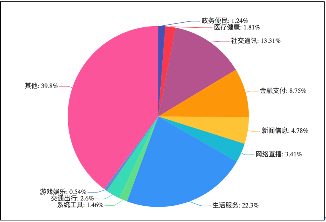 截止2023年06月底,通过潮启移动端安全管控平台共监测到山东省移动应用数量为11191款(不含历史版本),通过对移动应用行业分布数据追踪发现,目前山东省移动应用行业数量排名靠前的为生活服务类,约2475款,较05月份新增5款;社交通讯类约1477款,较05月份新增2款;金融支付类约971款,较05月份新增1款;新闻信息类约530款,较05月份新增1款。![]()