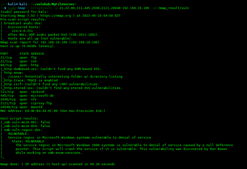 对这些TCP端口进行常规的漏洞扫描以及详细信息扫描