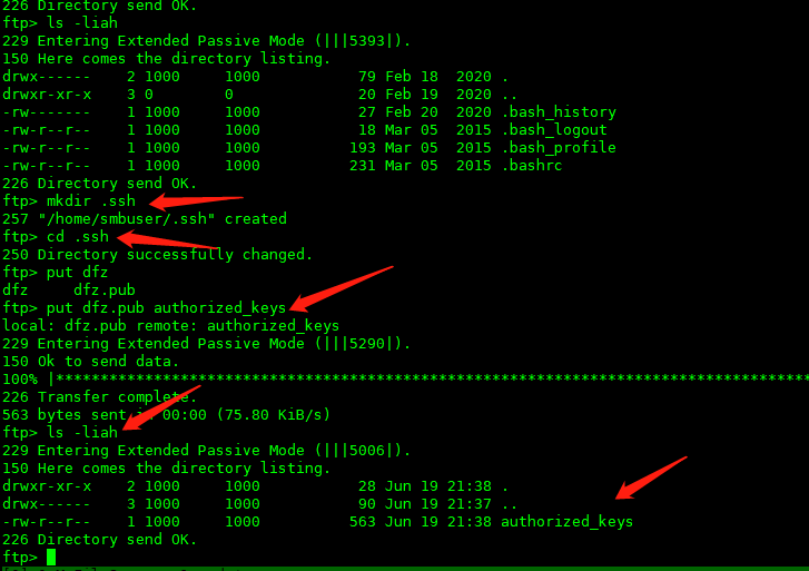 结合之前ssh_config的配置信息,我们可以上传自己的一个证书来达到通过smbuser来登陆ssh