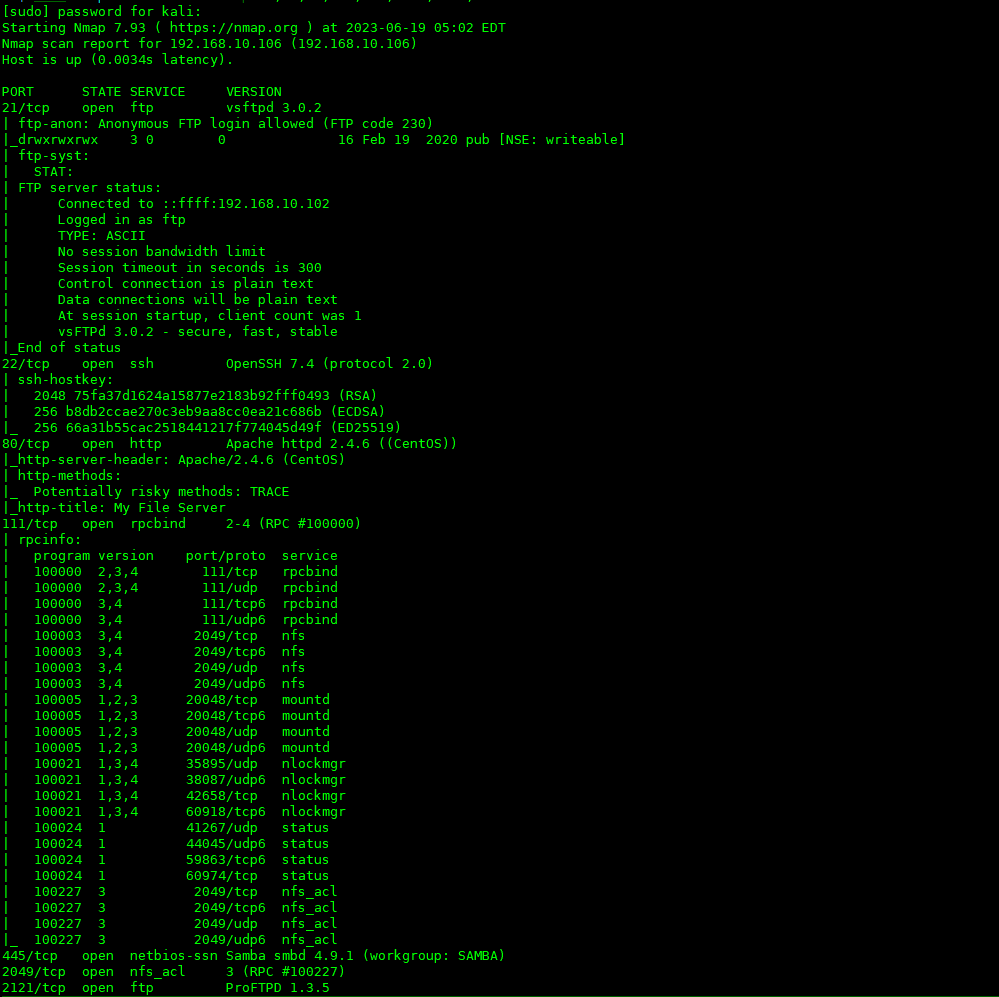 sudo arp-scan --interface eth0 192.168.10.1/24用namp来扫描靶机的TCP端口和UDP端口开放情况