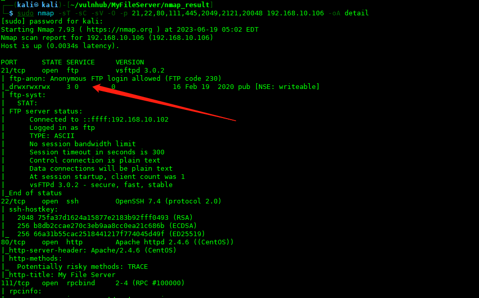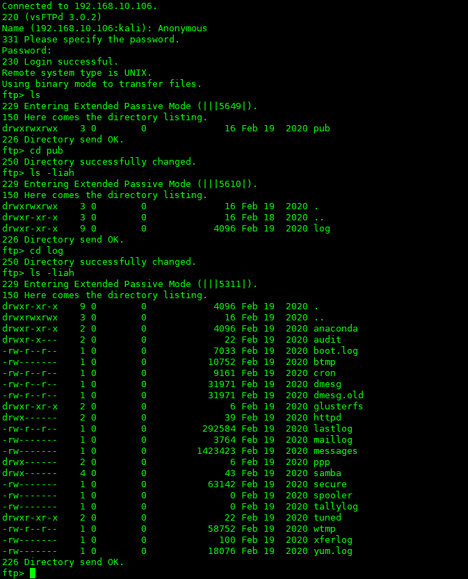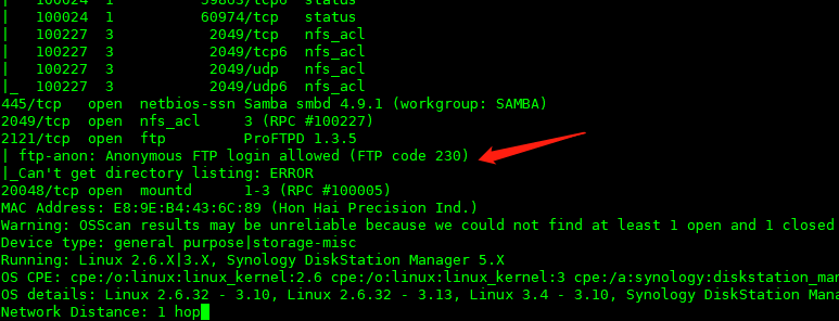 通过扫描结果可以看到ftp可以进行匿名登陆