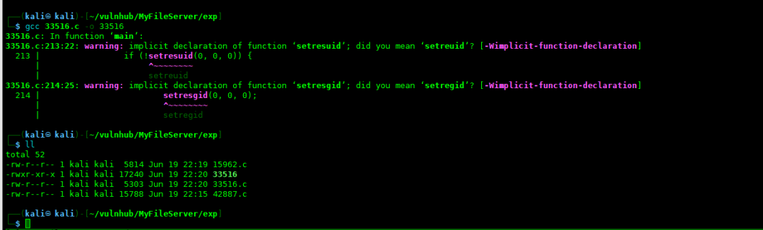 后来才明白要在靶机上进行编译然后运行才能提权成功(算踩了一次坑吧)