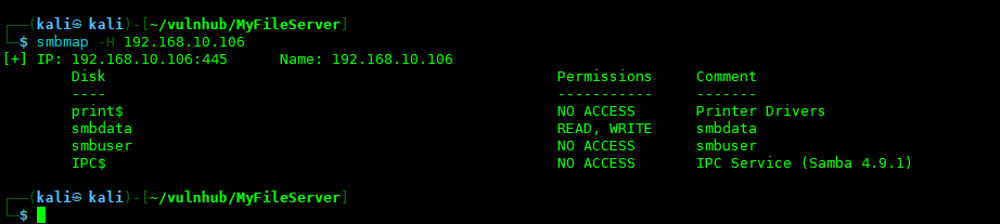 smbmap -H 192.168.10.106可以看到其中的smbdata有可读可写的权限