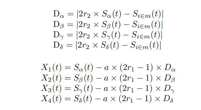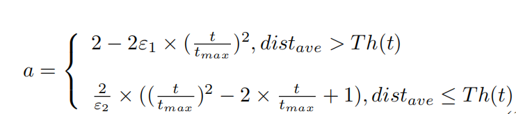 其中Th是用于条件收敛的收敛阈值,其通过迭代而被动态调整。在迭代开始时,此时种群彼此远离,Th值较低,以增强搜索能力;在迭代结束时,当种群分布得更密集,该值变得更高,以加强算法的开发能力。ε_1和ε_2是范围从0到1的系数,其通过下式获得: