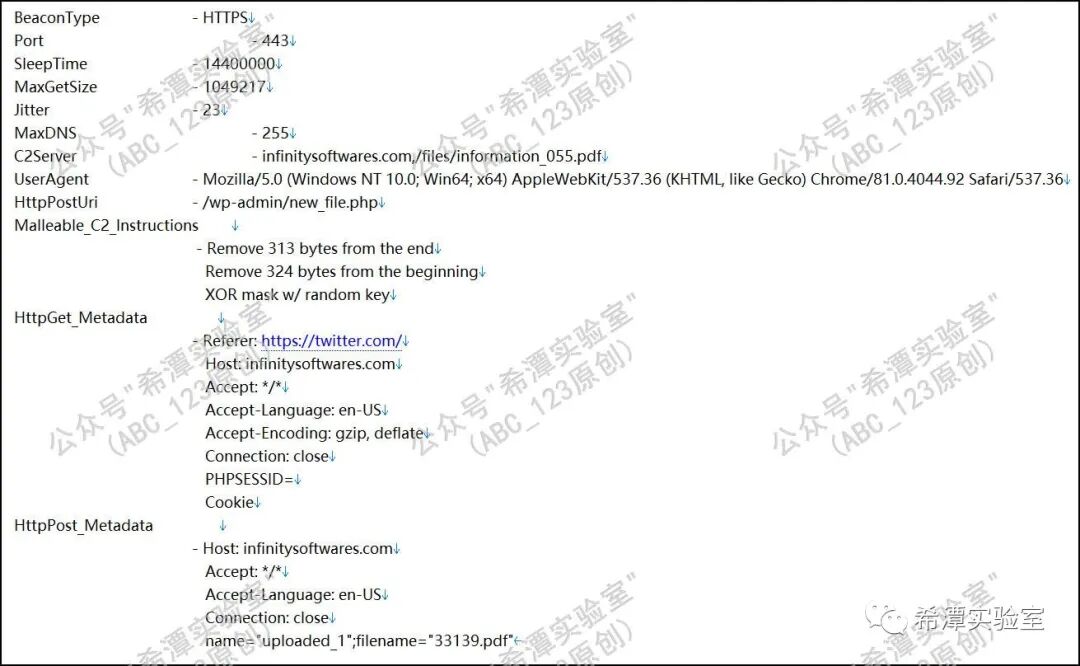 TEARDROP使用“twitter.com”作为https协议中的Referer字段的内容,会使安全人员误以为C2域名infinitysoftwares[.]com是一个正常的白名单域名,从而逃避检测。