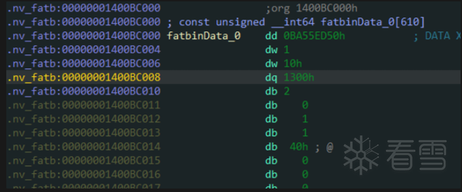 这个0x1300是从0x1400BC010,也就是fatBinaryHeader这个结构体之后开始算的。
