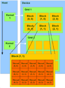 GPU 代码是作为函数集合实现的,语言本质上是 C++,但带有一些用于将它们与主机代码区分开来的注释,以及用于区分 GPU 上存在的不同类型数据存储器的注释。此类函数可能具有参数,并且可以使用与常规 C 函数调用非常相似的语法来调用它们,但为了能够指定必须执行被调用函数的 GPU 线程矩阵而略有扩展。