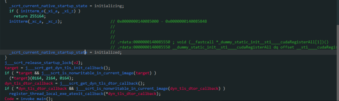 0x0000000140085550 cudaRegisterAll在 [0x0000000140085000,0x0000000140085848]范围内,会被先调用。