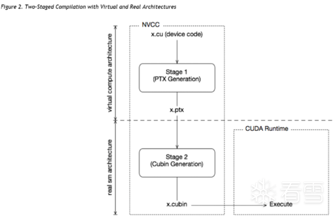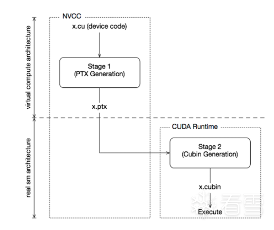 这种情况对于GPU而言是不同的,因为NVIDIA不能保证二进制兼容性,nvcc依靠两阶段编译模型来确保应用程序与未来GPU世代的兼容性。