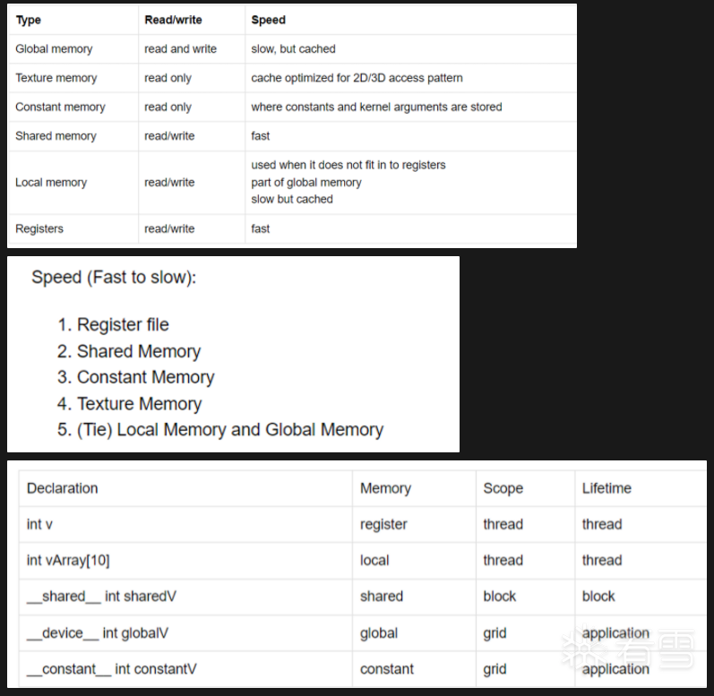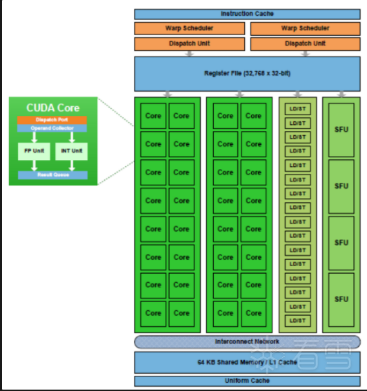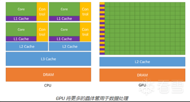 将更多的晶体管用于数据处理,例如浮点计算,有利于高度并行计算;GPU可以通过计算隐藏内存访问延迟,而不是依赖大型数据缓存和复杂的流量控制来避免长时间的内存访问延迟,这两者在晶体管方面都是昂贵的。