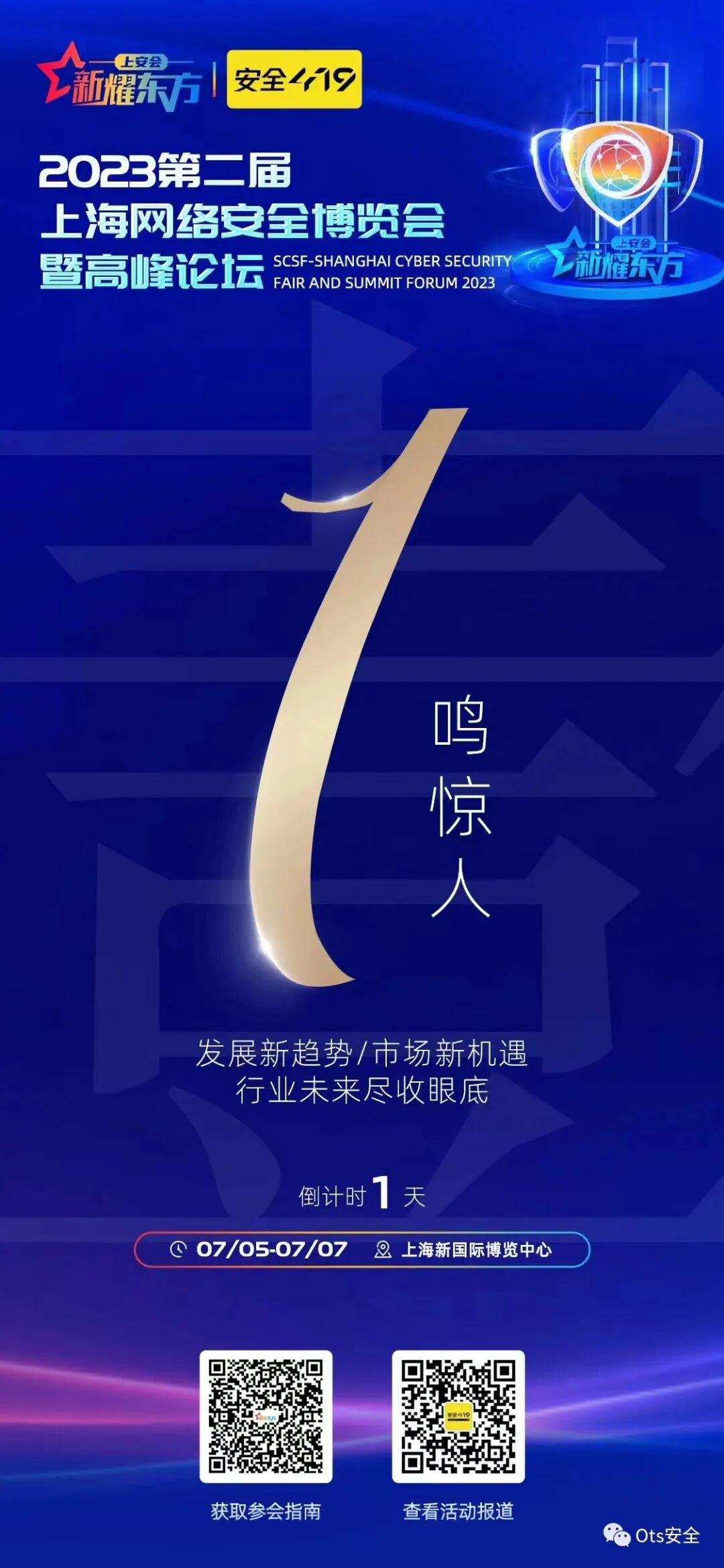 【行业盛会1天倒计时】0705-0707,上海新国际博览中心,第二届新耀东方-2023年上海网络安全博览会暨高峰论坛,1个主论坛,7个分论坛。百花齐放,百家参展单位;百家争鸣,领导专家大咖汇聚!欢迎扫