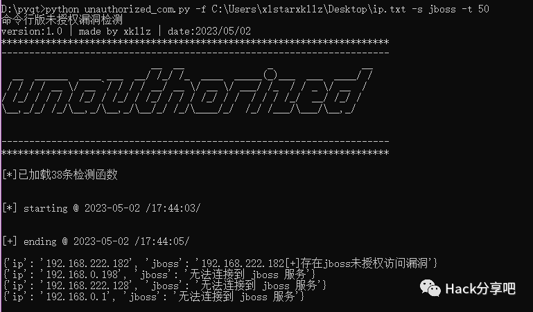 支持批量检测,导出结果,命令行还支持多线程,未授权检测目前不包括默认密码检测。