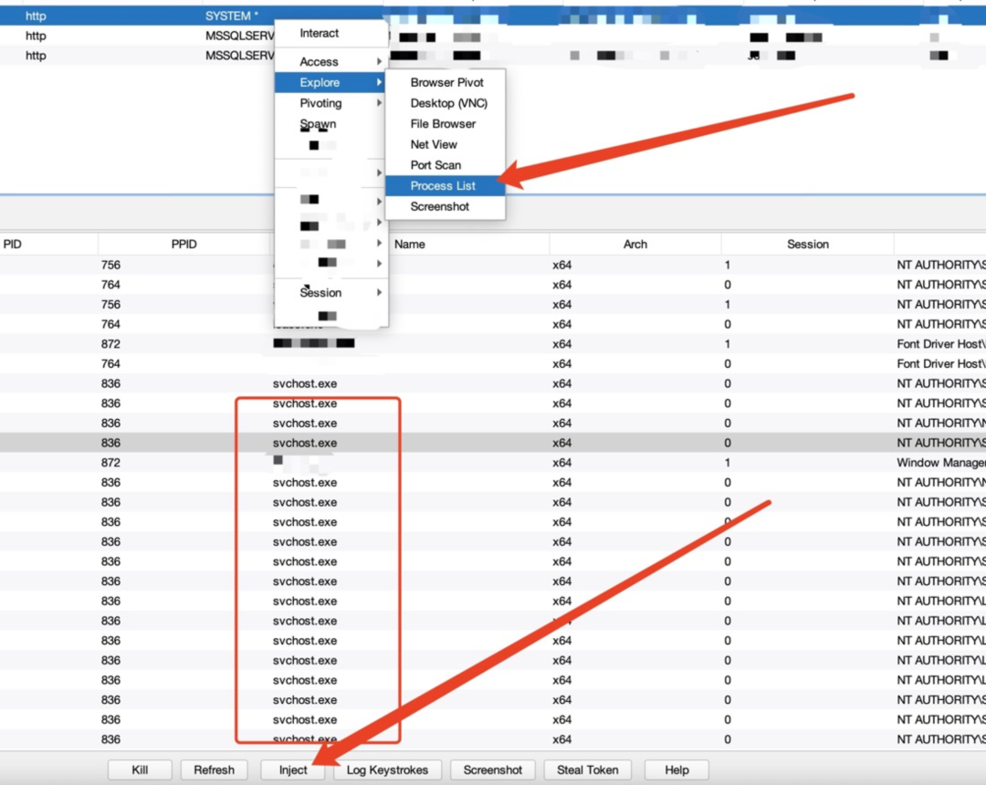 邮件-Explore-Process List-在加载出的系统进程中选择一个常见程序-下方选择Inject至此系统提权和权限维持已完成,因为是server2012 R2版本,也没有啥比较好的办法去读密码,个人一般选择加用户或者激活guest然后搭代理登3389。添加用户: