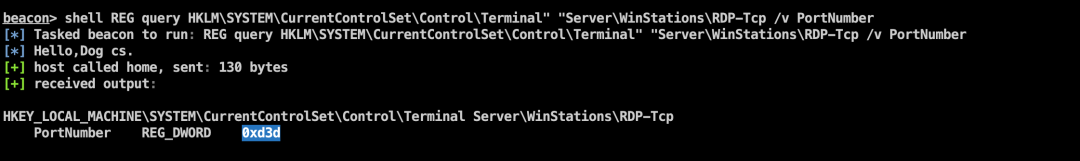 REG query HKLM\SYSTEM\CurrentControlSet\Control\Terminal" "Server\WinStations\RDP-Tcp /v PortNumber之后再通过计算器来将16进制转10进制即可: