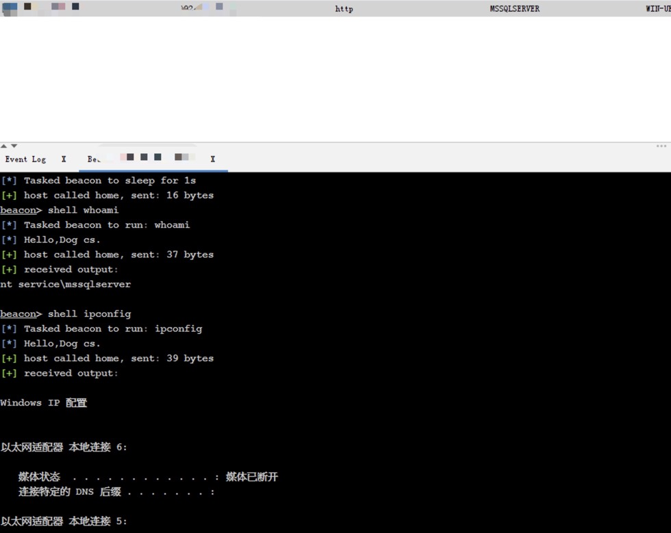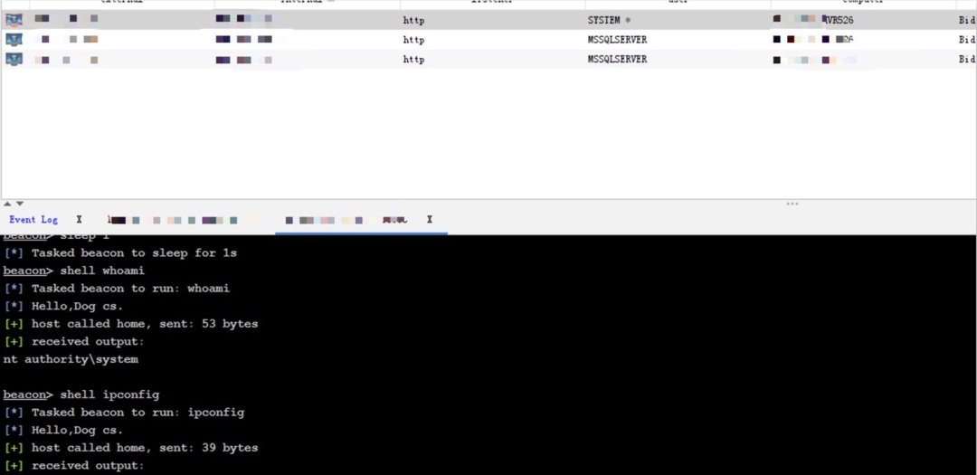 然后使用certutil下载cs上线程序,然后执行上线。certutil是windows下一款下载文件的工具,自从WindowsServer 2003就自带。但是在Server 2003使用会有问题。也就是说,以下命令是在Win7及其以后的机器使用。但是该命令的使用会引发杀毒软件的查杀,所以在实际渗透中需要将该命令做一定的免杀处理,比如