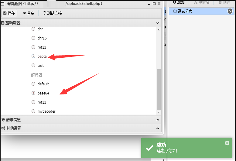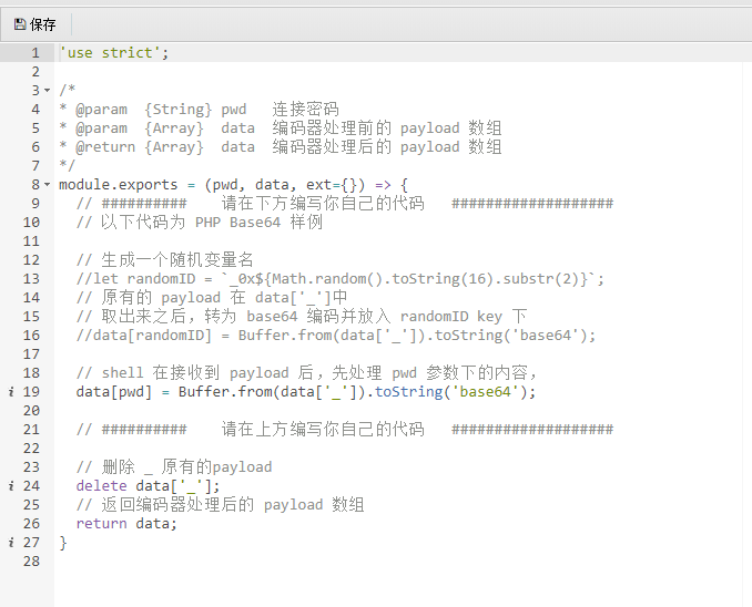 通过查资料。知道,1方面要对小马进行base64编码, 另外一方面要对蚁剑进行魔改。小马就是上面的小马了。至于蚁剑的魔改, 直接改配置 。简单来说,就是双base64