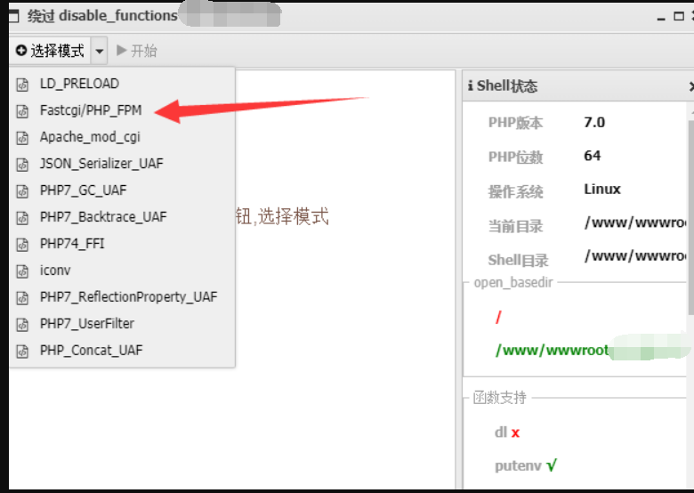 通过一个个测试, 只有选择fastcgi/php_FPM。并且自己狠狠地恶补了这个知识。大意就是,fastcgi是个解释器,直接修改这个解释器,从而绕过phpinfo的disbale_function .