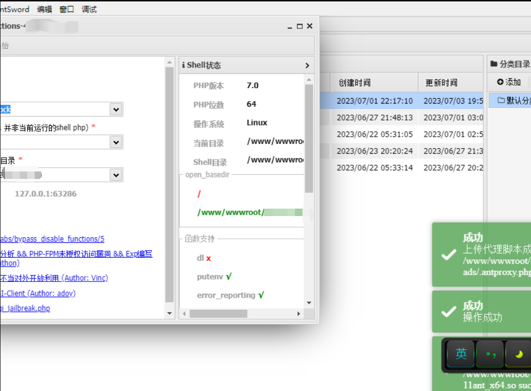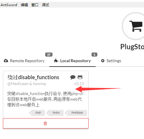 1,我先找的资料,是蚁剑的绕过disable_function 。蚁剑有个插件市场有绕过disable_function