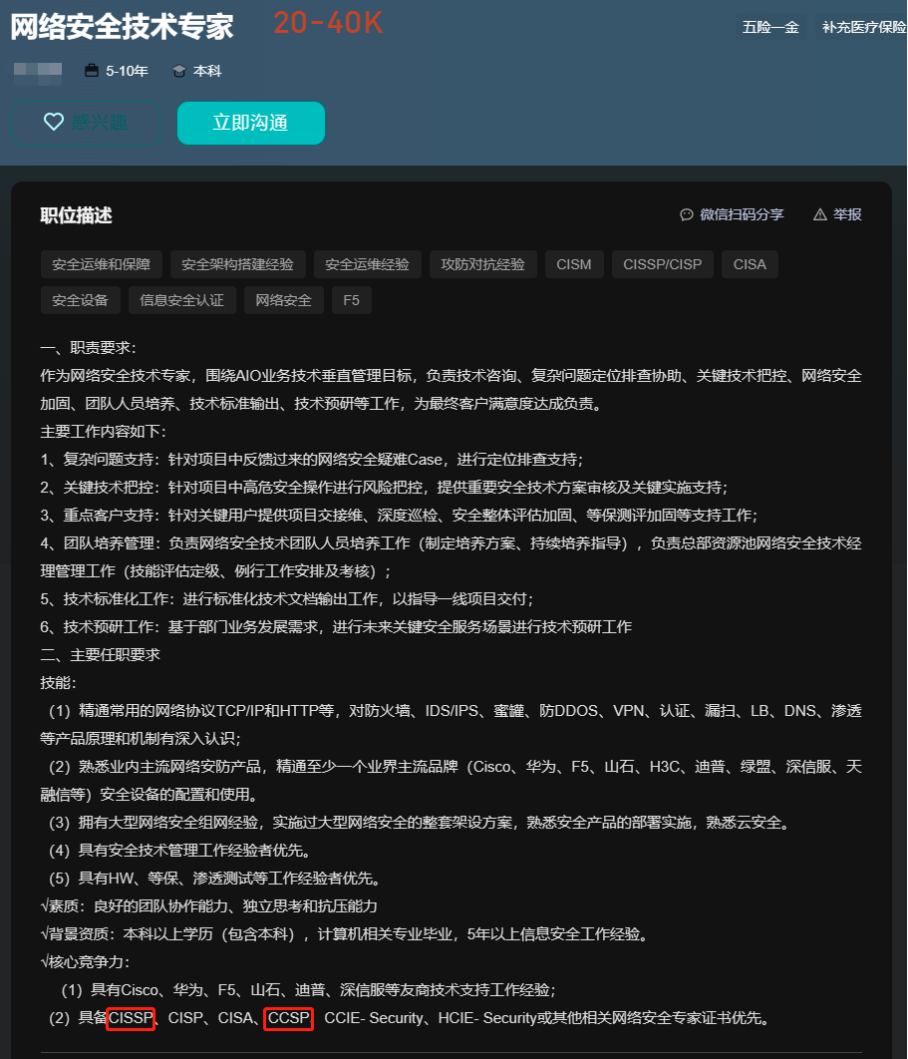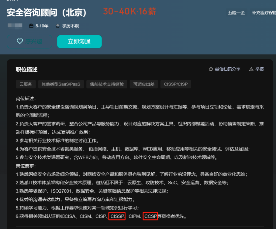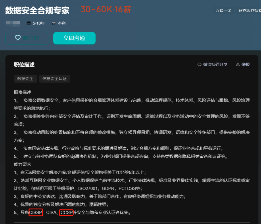 CISSP和CCSP作为受到全球范围内的广泛认可的认证,对于个人职业发展是非常有益的。它们提供了全球认可、跨越地域限制、行业认可和信任等优势,使您能够在全球范围内展示自己的专业素养,并为个人竞争力的提升和持续学习提供平台。同时也成为你通向高薪网安岗位的必备敲门砖!