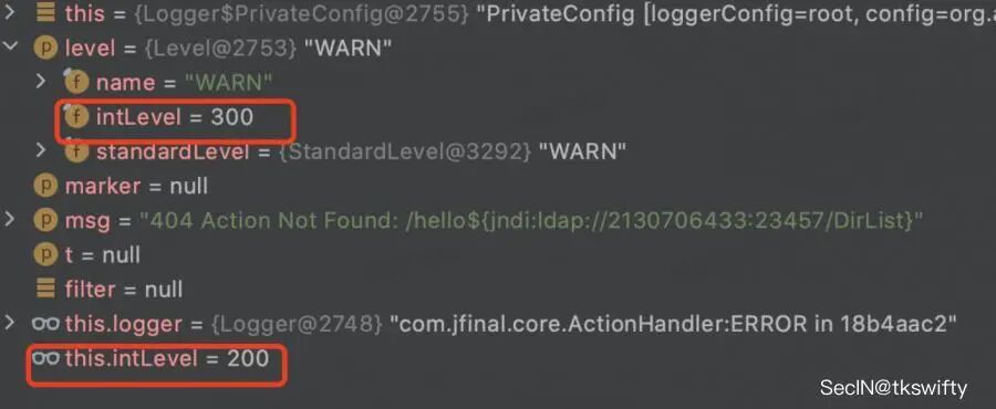 log4j文档里有对应的说明,200对应的是error,也就是error和fatal方法都是可以触发的,但是在jfinal中没找到error和fatal比较直观的触发点: