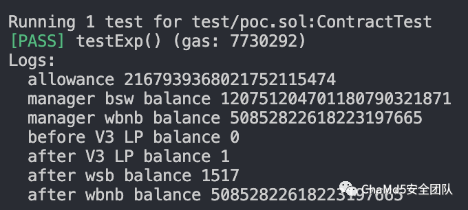 在第二次调用之后,攻击合约应该获取到一个LP和相应数量的两种的代币。