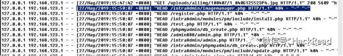 [27/May/2019:15:50:07入侵者开始扫描网站后台