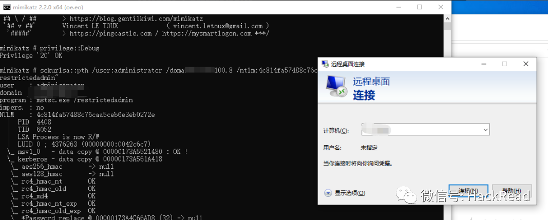 使用hash远程登录RDP,需要开启"Restricted Admin Mode"