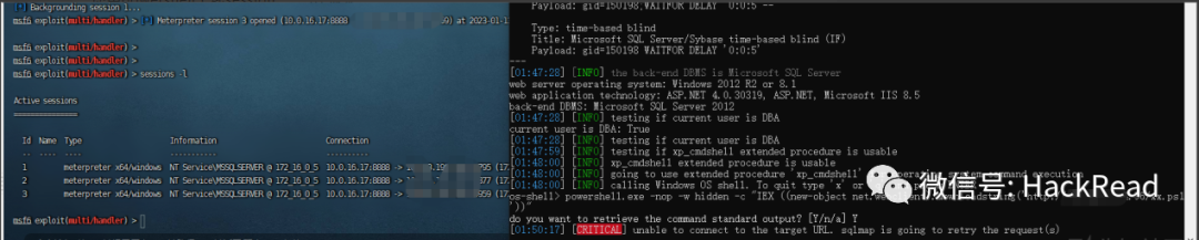 已经获取普通权限,接下来就是上线msf提权。msf生成powershell脚本,并放置在网站目录下。
