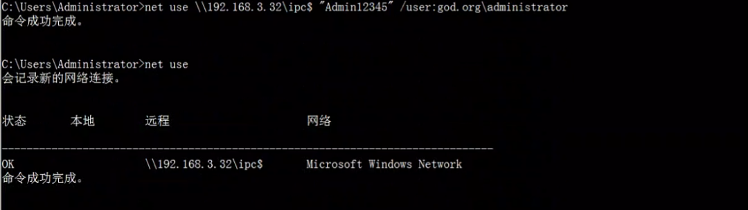 net use \\192.168.3.21\ipc$ "Admin12345" /user:administrator