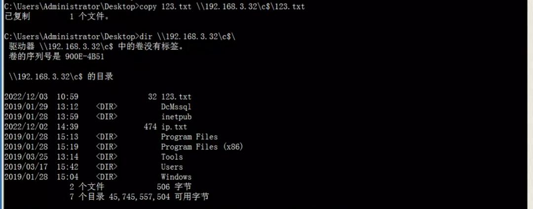 copy 1.bat \\server ip\c$  # 上传文件