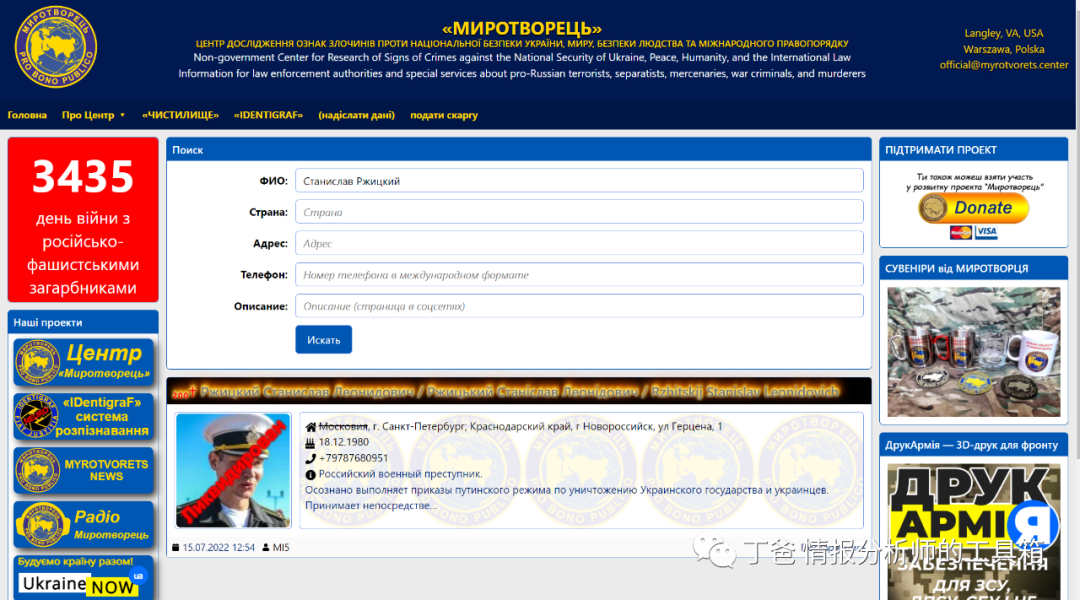 “和平缔造者”网站网址:https://myrotvorets.center/