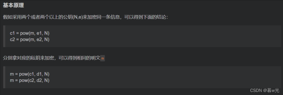 适用于:使用相同的模数 N 、不同的私钥,加密同一明文消息。